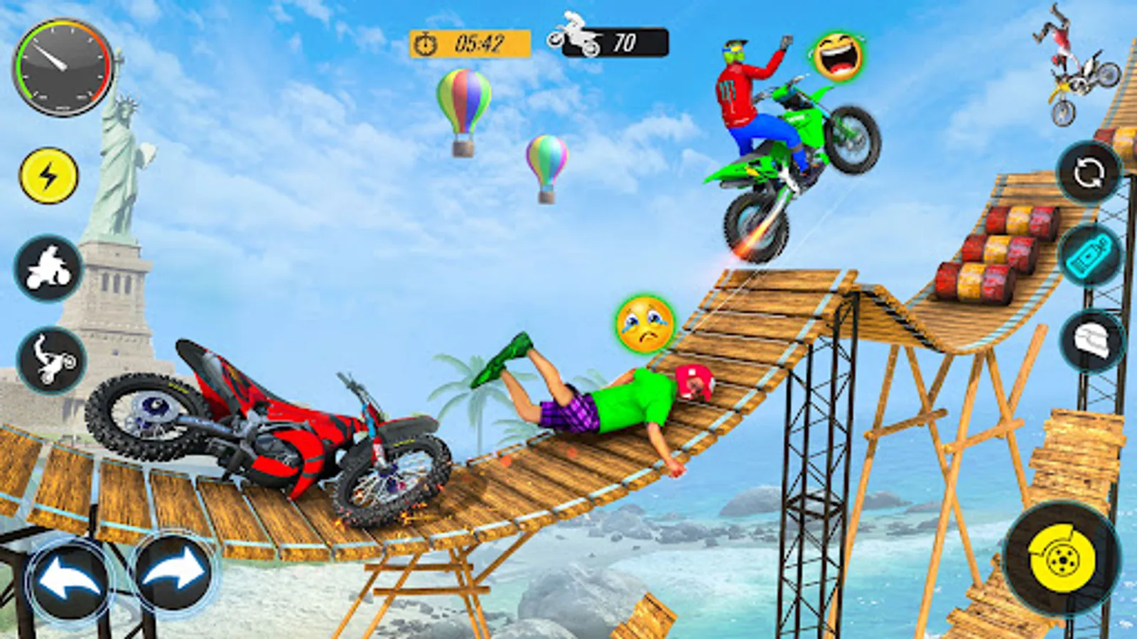 Get ready for a real bike race and bike stunt games 🎮 challenge with the best flying bike stunt game 🚴♂️ you'll ever find. If you love the thrill of a stunt bike race game 3d 🏁 and dirt bike stunt game then this dirt bike games just what you need! This motorcycle stunt game and stunt bike race game 🎮 is filled with a lot of exciting adventures waiting for you! Enjoy this flying bike stunt game and become a bike stunt race tricks master in the most extreme stunt bike race ever 🚵♂️! Take part in a pro bike stunt game and race on the extreme uphill track of this stunt bike race game. With many challenging levels in this bike race game and bike stunts game, you'll witness a new world of stunt bike race game 3D and flying motorcycle games. Challenge players from around the globe and prove yourself as the king of this stunt bike race game and bike stunt games 🚴♂️.