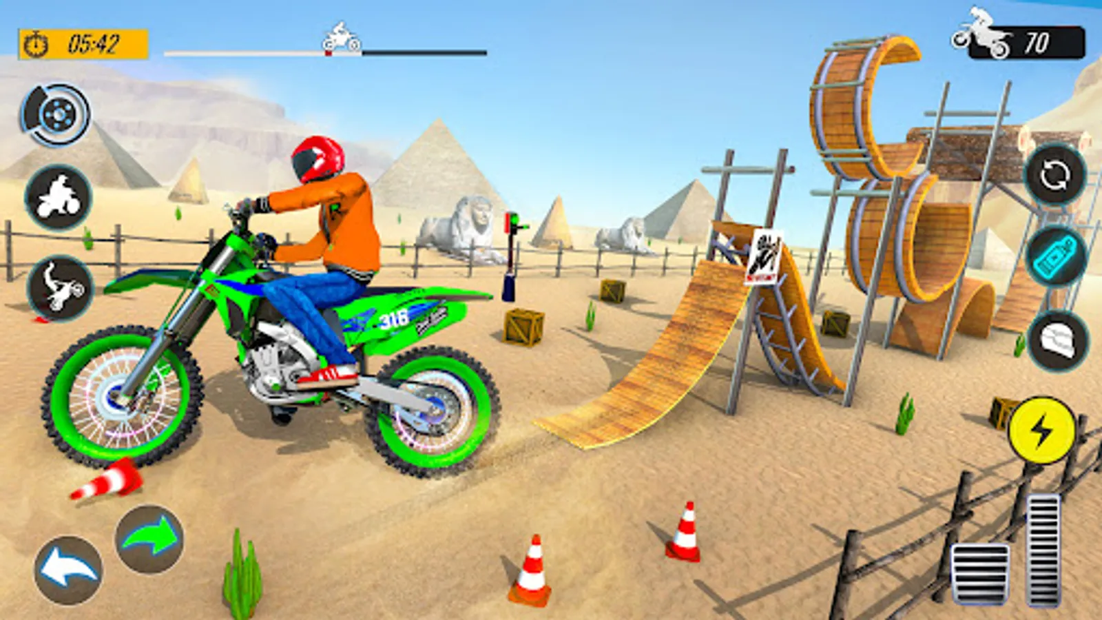 Bike racing is just half the ride! We know you love a good bike stunts race game 🚴♂️ so this dirt bike games got the most extreme stunts ever! Become an flying bike stunt race tricks master and show your stunt bike skills in the most extreme bike race game and bike stunt games of 2023 🎮. Race, jump & perform stunts 🚵♂️ in this bike stunt games levels! This bike stunt game is filled with action and insane stunts on tricky impossible tracks! Pass the impossible track and master the skills of bike racing as a dirk bike stunt race tricks master in the high speed racing games adventure of this bike games. Become a flying motorcycle games pro and show your crazy bike stunts race game 🏁!