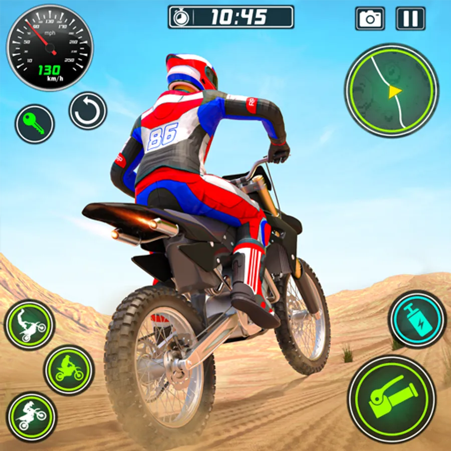 Enjoy a motorcycle stunt game adventure with unique stunts in one of the best dirt bike games 🚴♂️. This motorcycle stunt game is filled with challenging bike game races. Show your crazy motocross skills and perform stunts in these motorbike games. You'll love playing this crazy bike racee game! With many levels, this bike game is a cure for your extreme moto race fever.