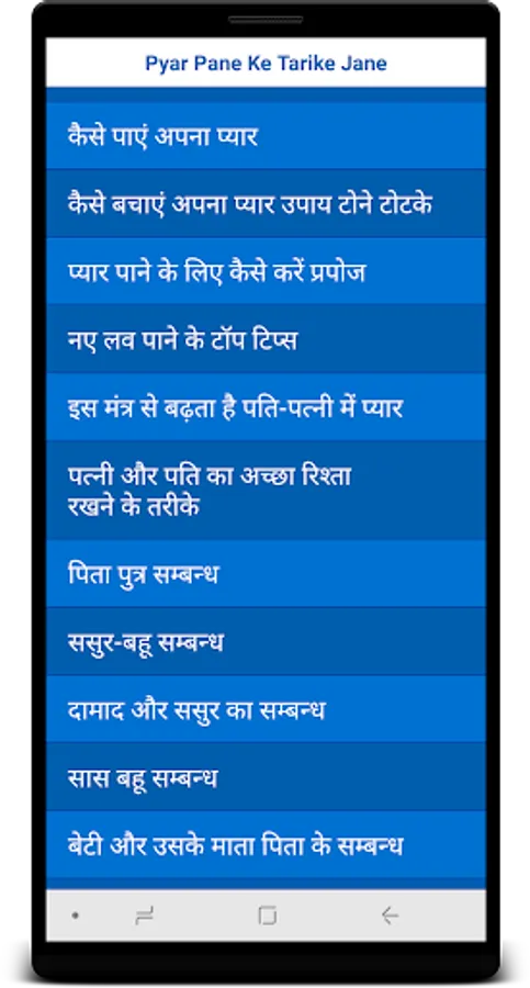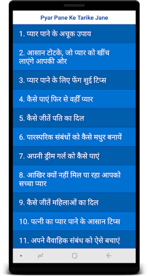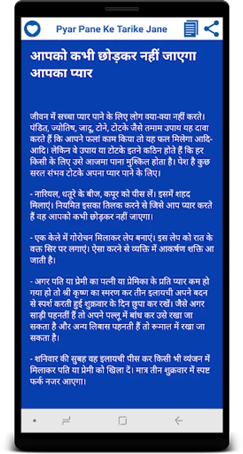 > This application is following catagory of Pyar ko Pane Ke Tarike in Hindi, Tips For Love Problems, Love Mantra and etc ...