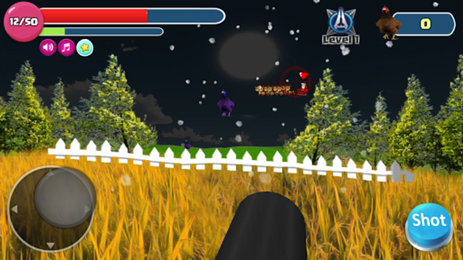 Some chickens are becoming crazy because of hunger, then they attack your farm, you have shot them all to protect your property!