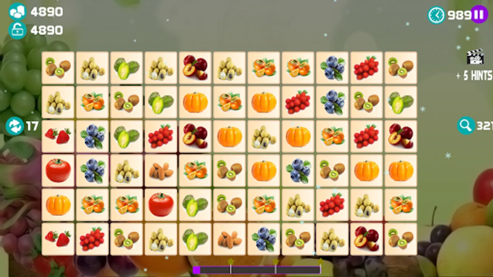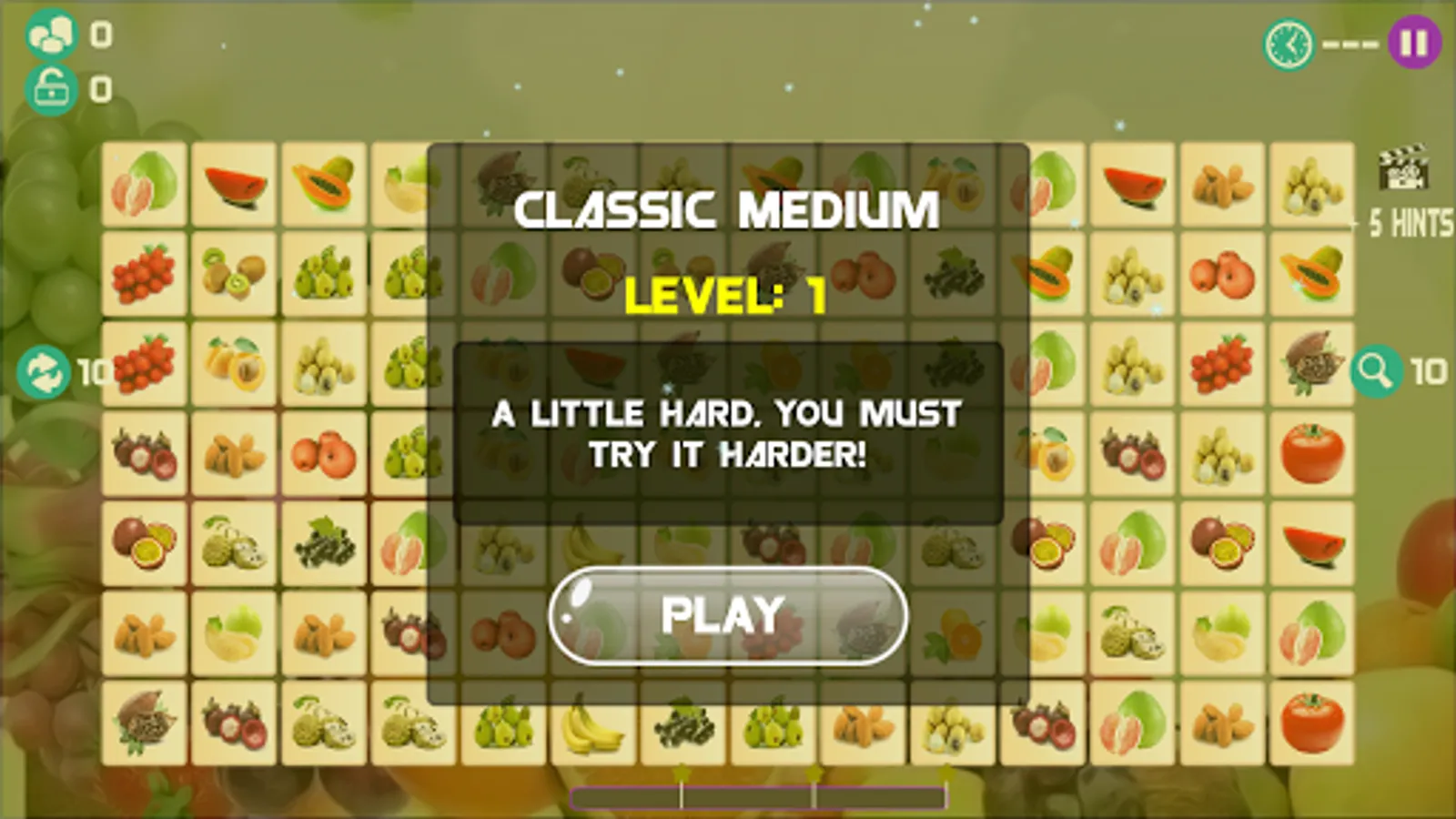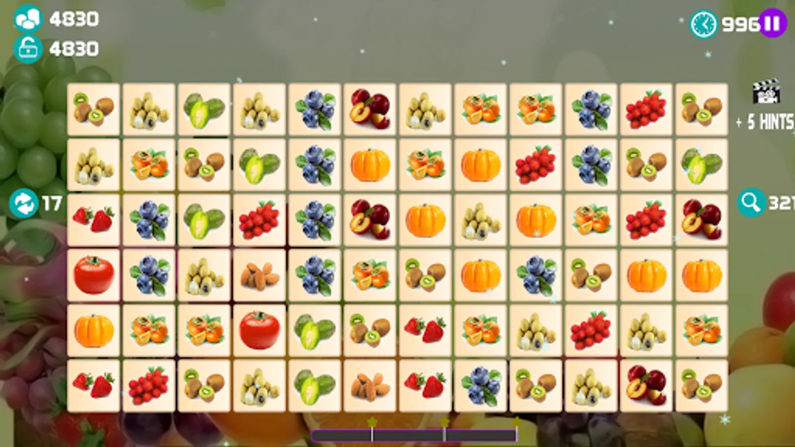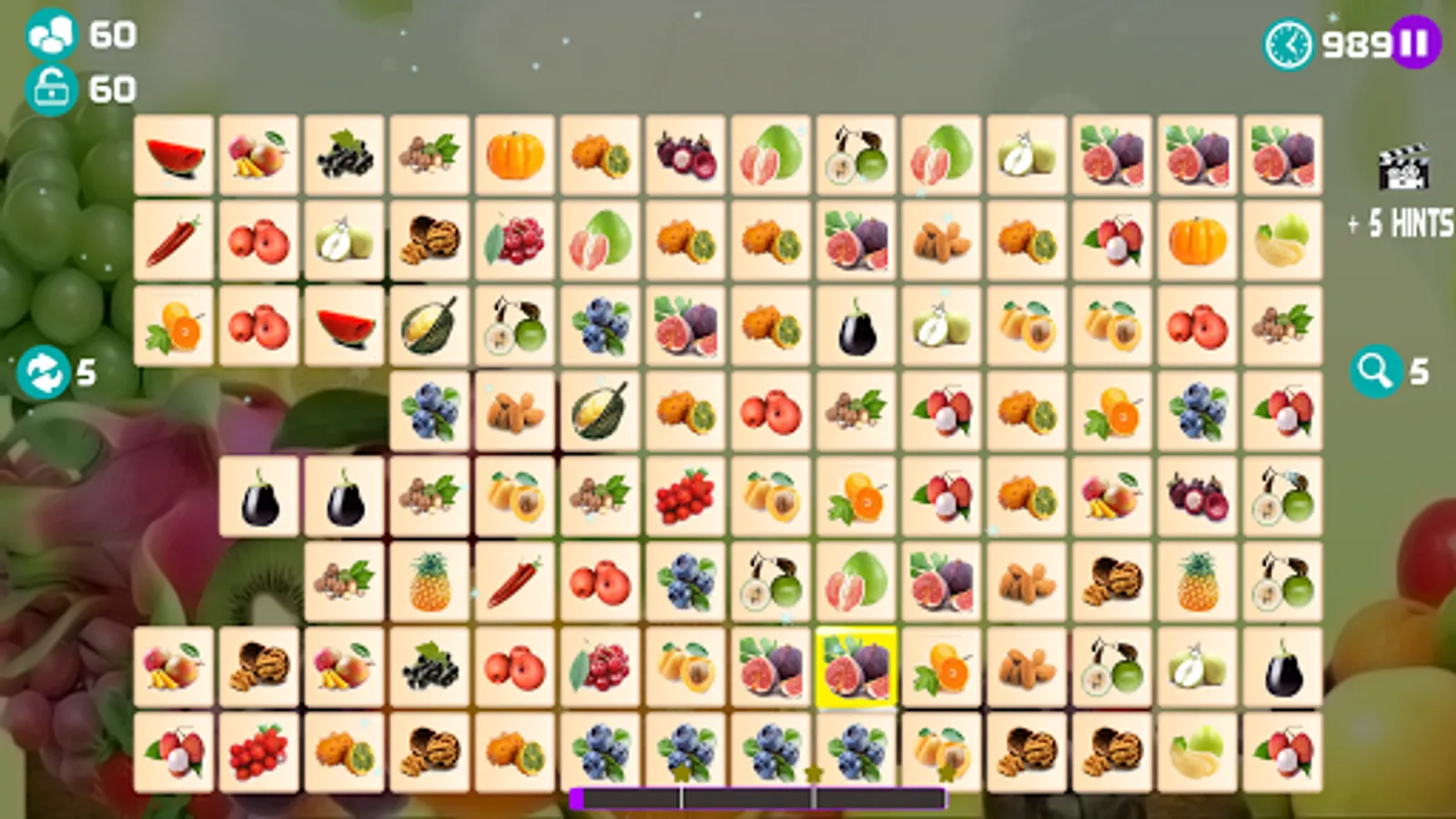 Connect two of the same fruit to score , avoid block by other fruits. This game is easy to play for every one but hard to complete all the levels!