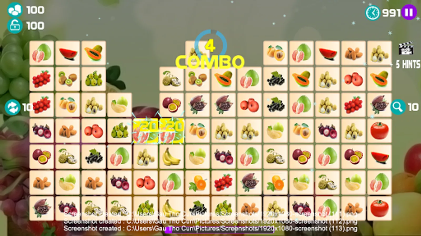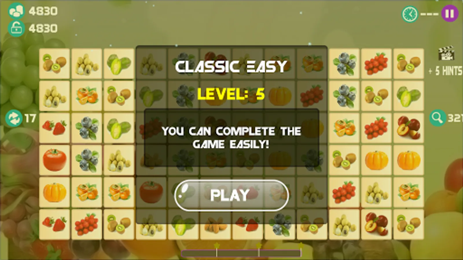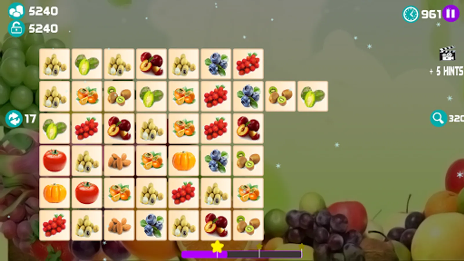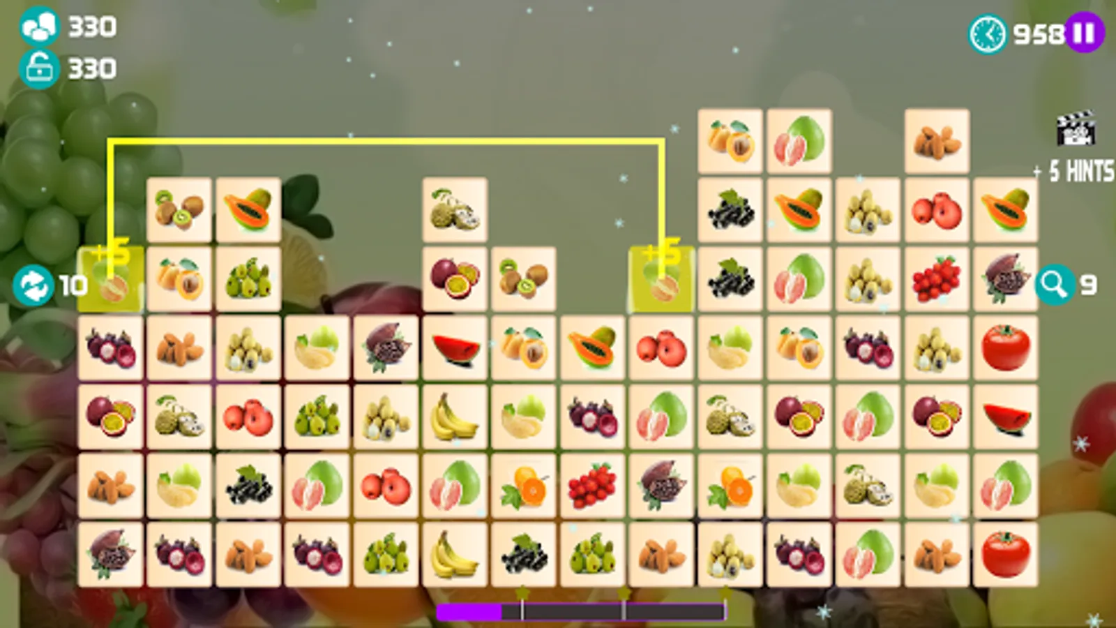 Connect two of the same fruit to score , avoid block by other fruits. This game is easy to play for every one but hard to complete all the levels!