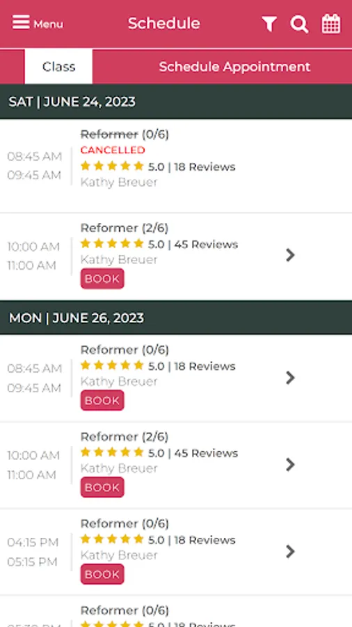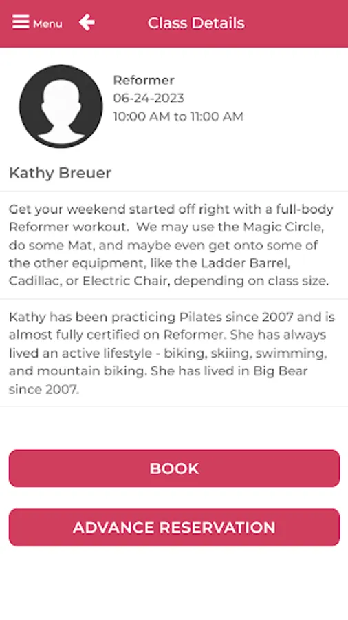 Use the Big Bear Pilates app. to register for or cancel classes.