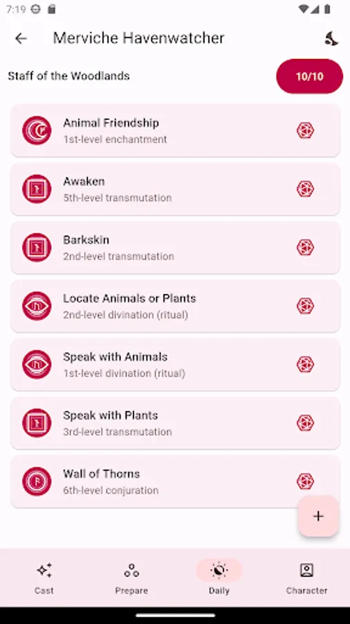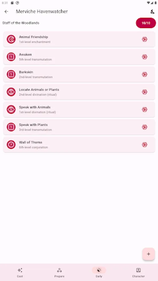*DAILY SPELLS: Some class features, feats, or items can give you spells that you can cast a limited number of times per day. In the 'Daily' tab, you can track those spells and their uses.