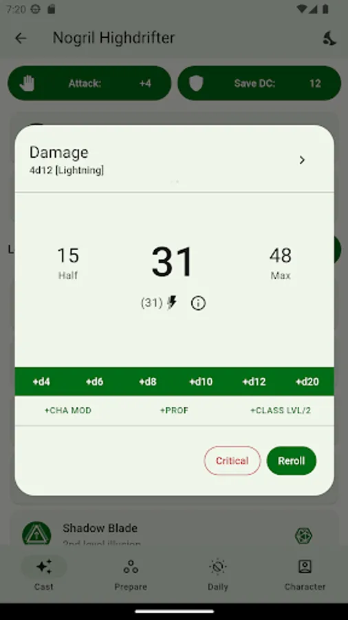 *DICE ROLLER: All spells that have a spell attack or contain a roll formula (every built-in spell that deals damage, heals, etc. does, and you can add your own formulas in your homebrew spells) have an additional option to also roll the dice!