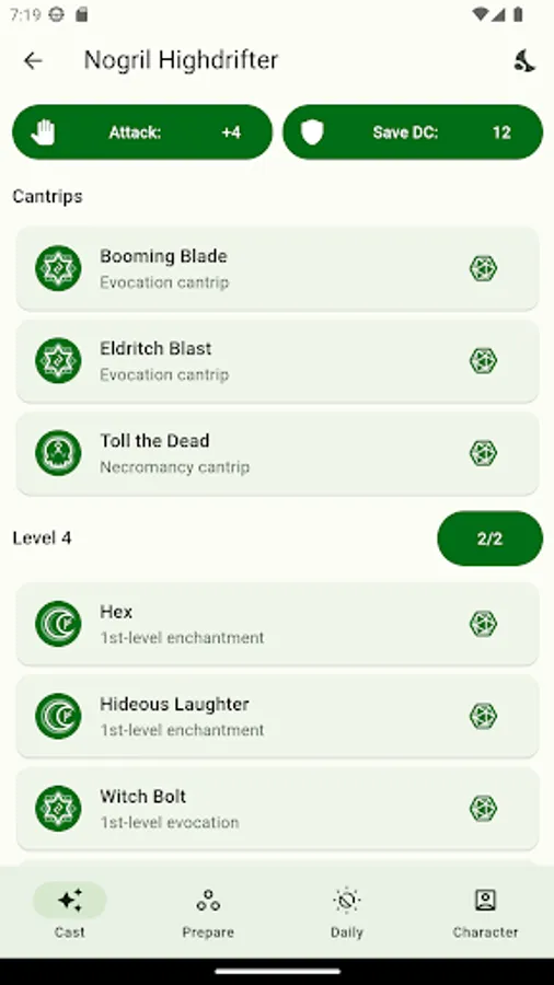 *CASTING SPELLS: In the 'Cast' tab, you can expend spell slots to cast your known/prepared spells.