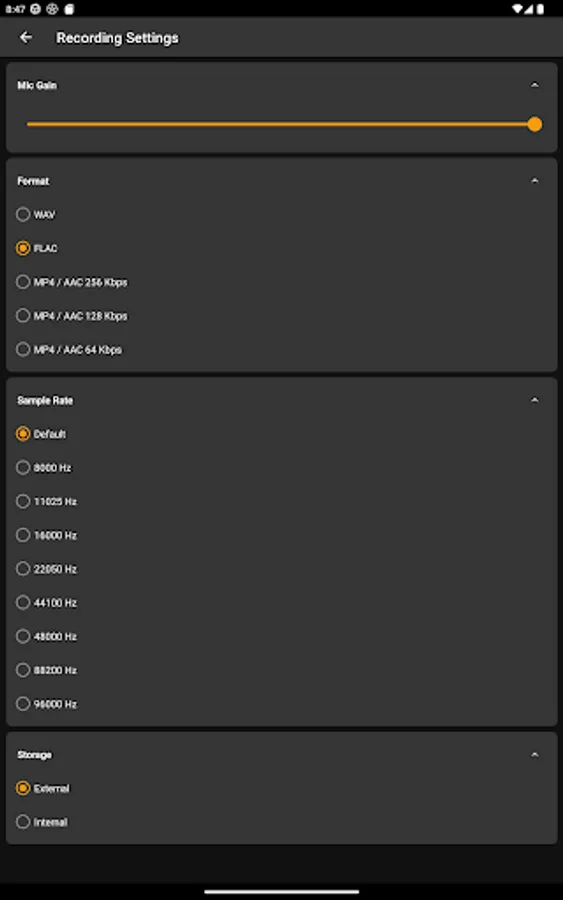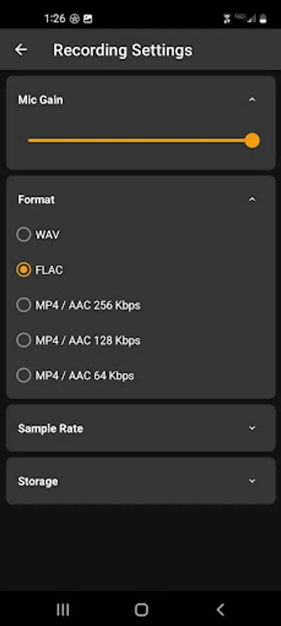 You can now choose your preferred recording format: WAV, FLAC, MP4/AAC.