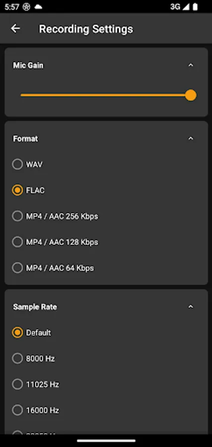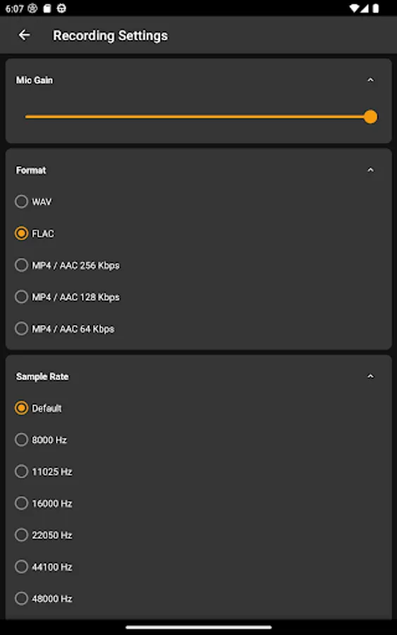 Robust recording settings: WAV,FLAC,MP4/AAC 8hz - 96000hz