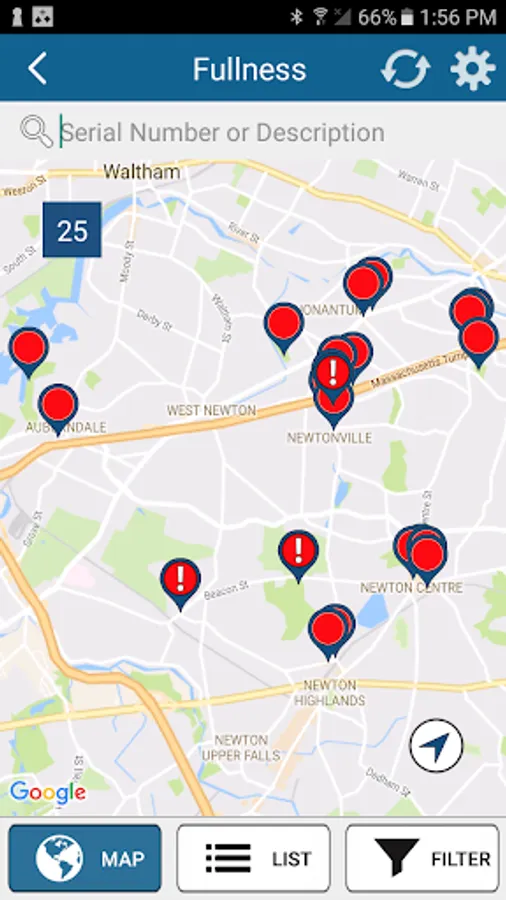 • Map and list views of your Bigbelly smart waste stations showing real-time status