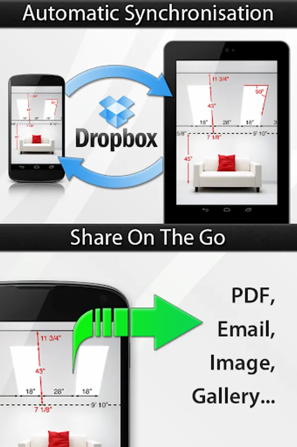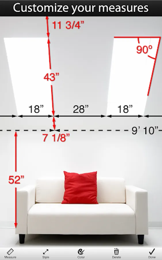 Whenever you need to save dimensions, sizes, angles or write down a detail you need to remember, Photo Measures will help you to be more efficient and more accurate.