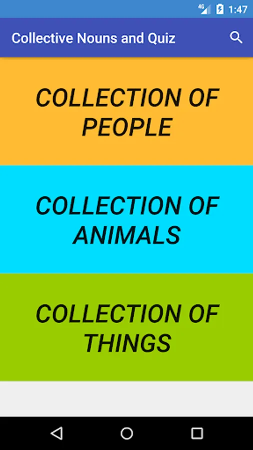 This app provides with over 200 collective nouns in an easy to understand format. It also comes with a search function for quick access. There is also an audio feature equipped to facilitate proper pronunciation.