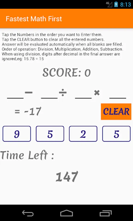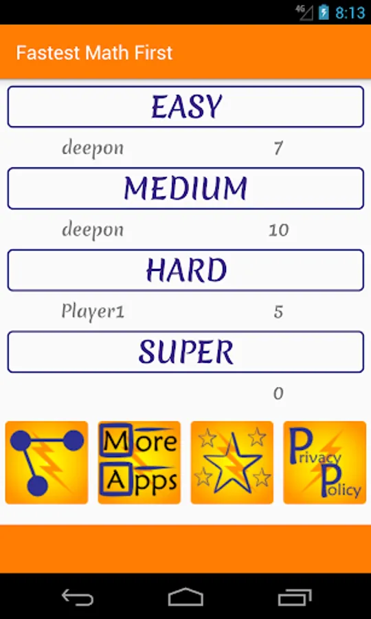 Every mode has unlimited math questions generated randomly but with limited time.The questions are limited with four mathematical operations :- Addition, Subtraction, Multiplication and Division.