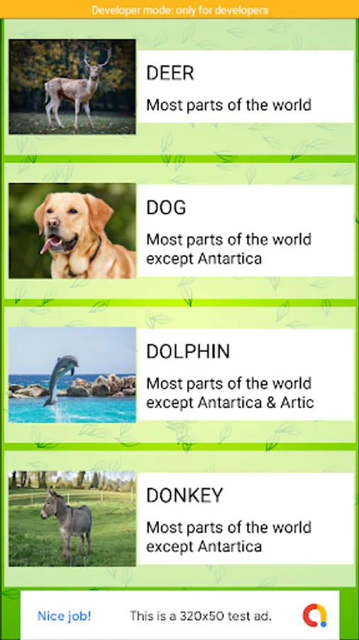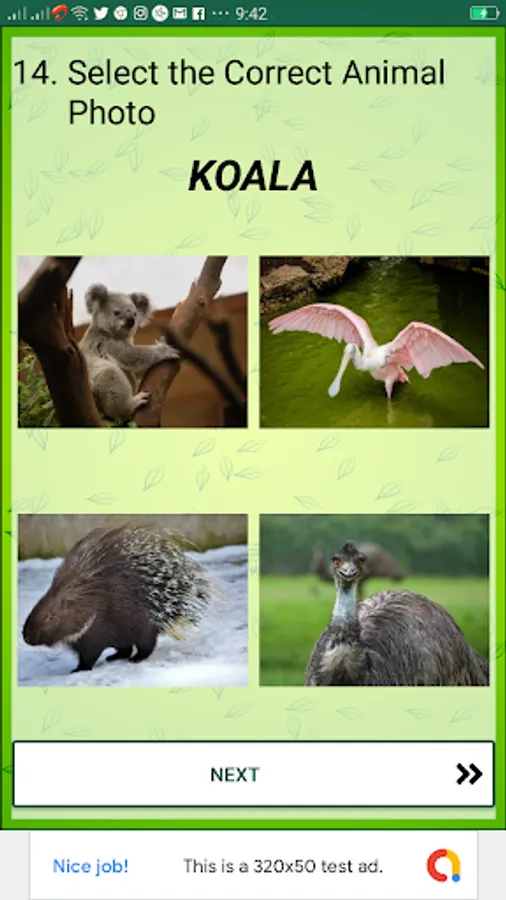 There is also a quiz segment with two types of questions testing both identification of the animal and the spelling of the animals name. Every round of quiz comes with 20 set of random questions with no repeats.