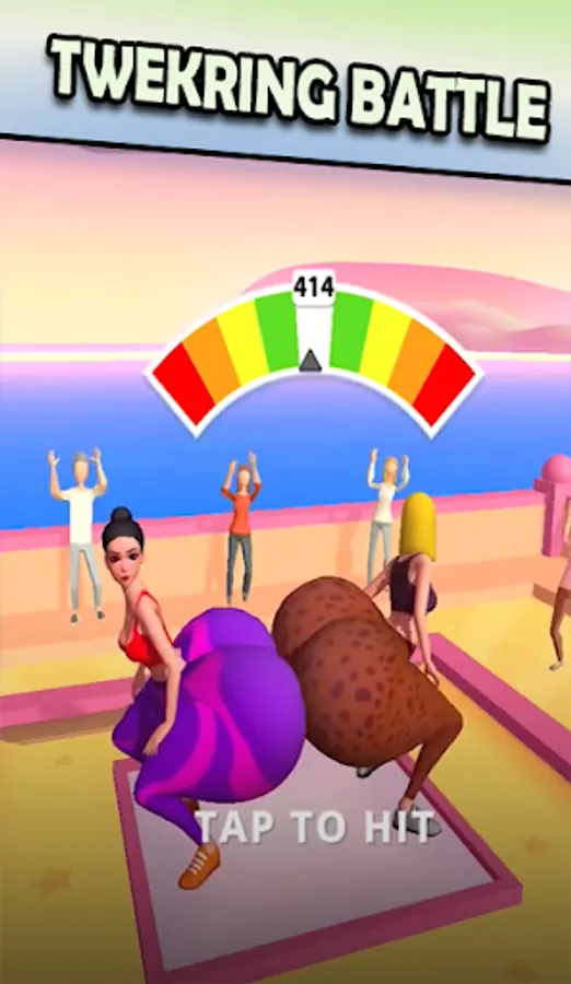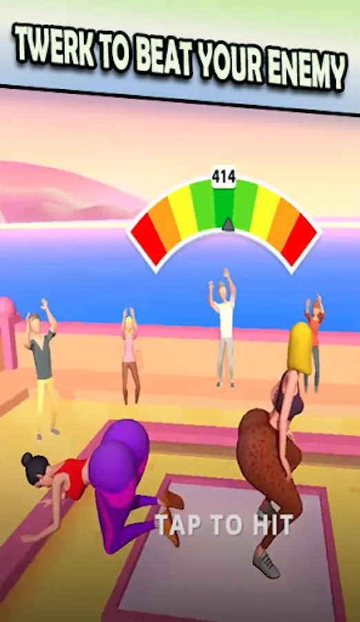 - in the twerk battle ( butt clash ) , click on ( tap to hit ) to kick your enemy outside .