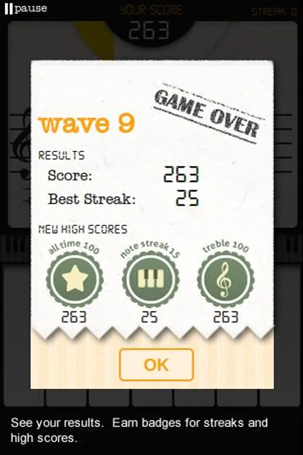 - Practice mode (option to turn on or off note labels and labels on piano as you learn how to read music notes)