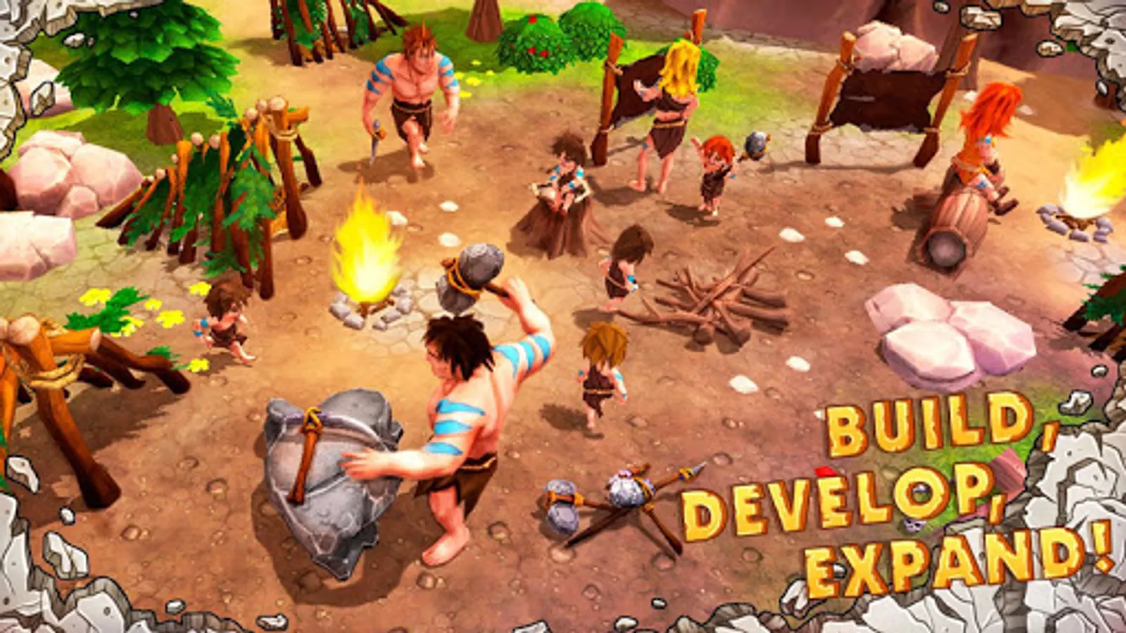 Watch your tribe grow! Every single settler is valuable and influences the whole evolvement of the village life. Make sure your clan feels good and ready to have families. Enlarge the population gradually and make sure each caveman has home to live and work to do.