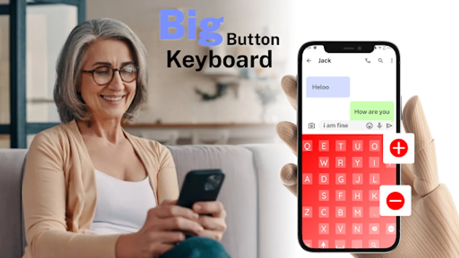 Big button keyboard is user friendly keyboard if you are unsatisfied with the small keys on normal keyboard. Big button Keyboard has larger buttons than the normal keyboard so it's simple to type correctly, even on small screens or with large fingers. Now it has become smooth to type with big buttons keys. 😊 😊