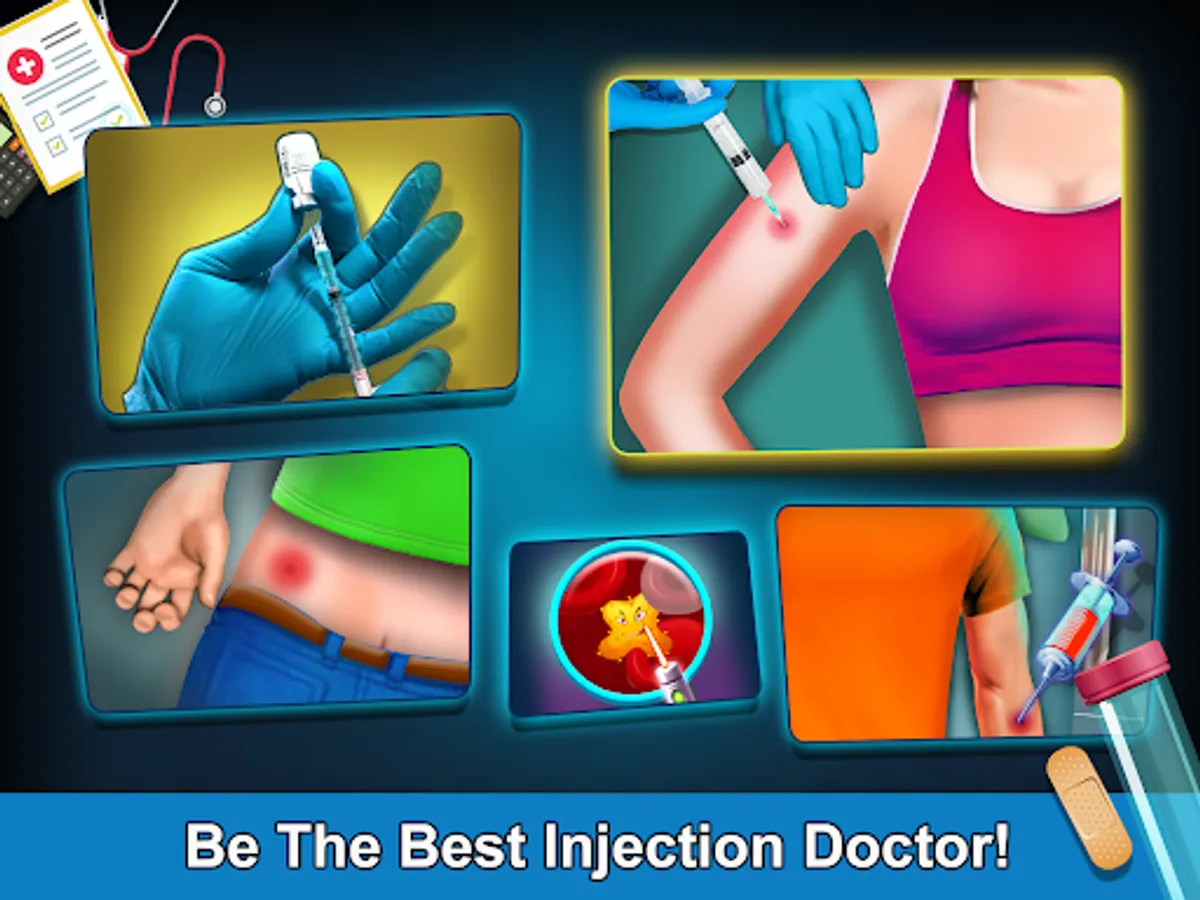 * Treat pain, fever, cold, itch, and injuries in these offline doctor games and drive your patients to the surgery clinic in an ambulance while playing this injection simulator.