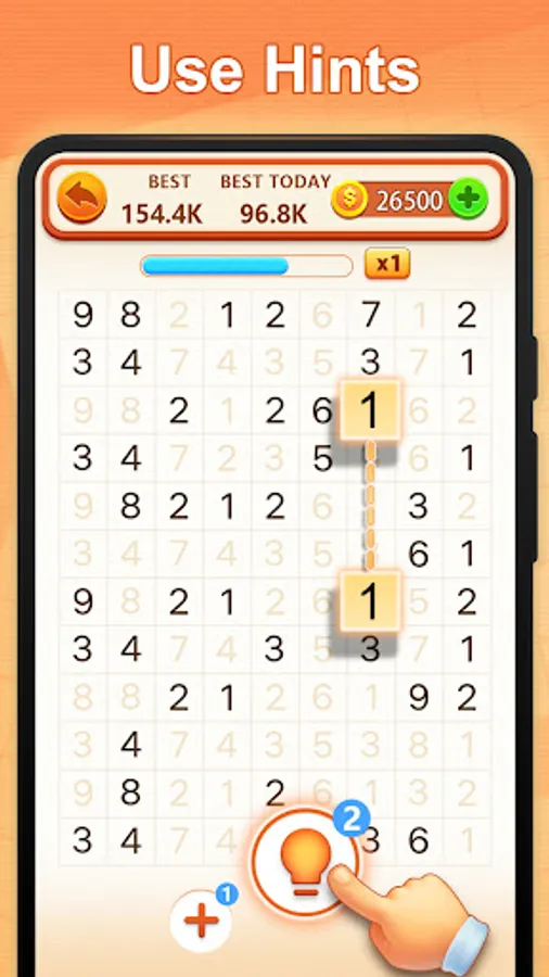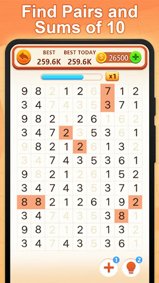 - You need to find and match the pairs of same numbers(6-6, 7-7) or pairs that add up to 10(1-9, 3-7). Simply tap on the two numbers one by one to eliminate them from the board.