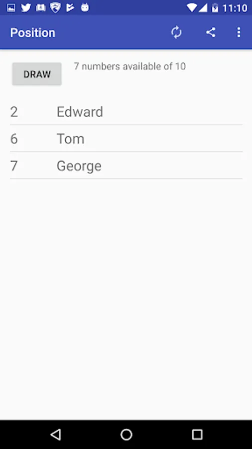 As numbers are drawn, the app displays the progress. At the end of the drawing, the list may be shared via email or other means. You may also set up default values for your drawings to make them very quick and easy to set up.
