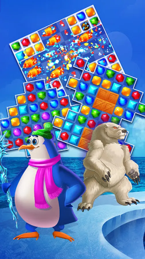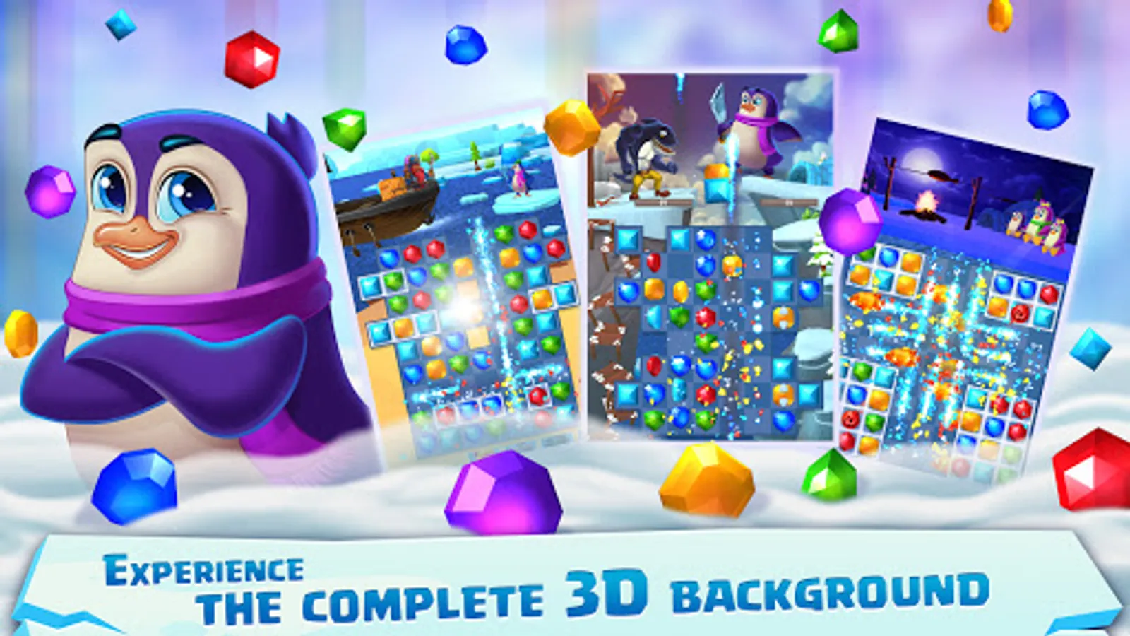 Penguin story is an amazing Match 3 Game with colorful gems. Plan your moves by matching 3 or more gems in a row, using boosters wisely in order to rescue the penguins and their families.
