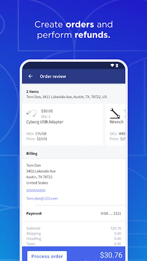 - Accept payments for orders, and perform refunds