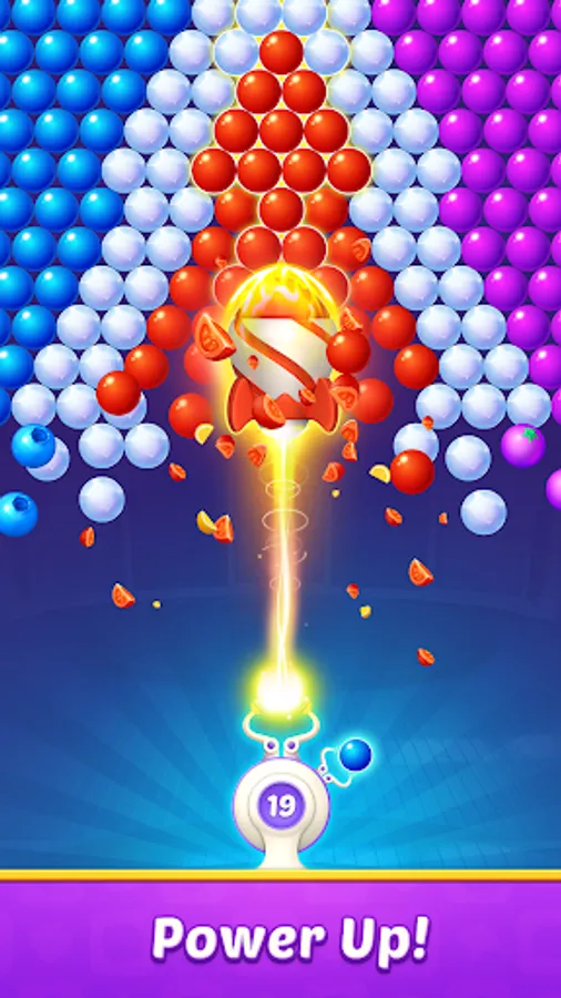Match and pop fruit bubbles to create different boosters such as Bomb, Spinning top and Soda can, which can be merged into a more powerful one!