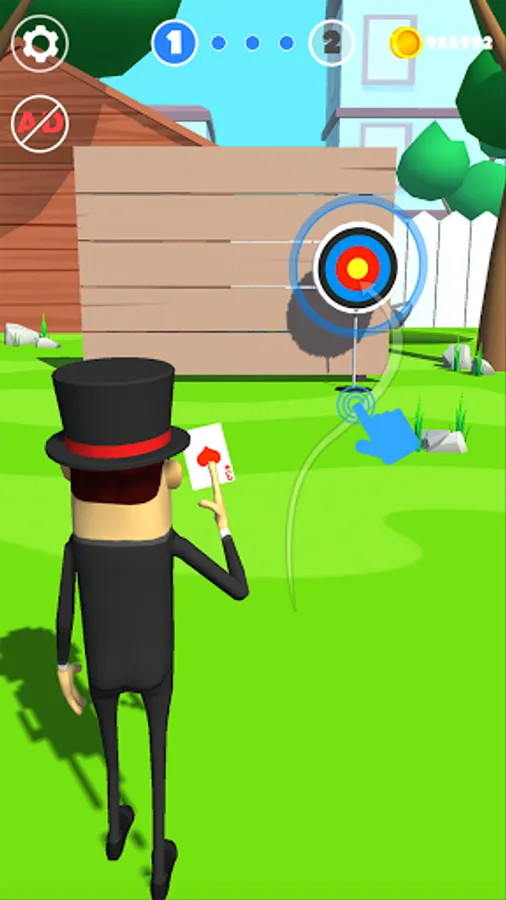 Draw a path, throw cards, avoid obstacles, smash balloons, cut fruits, and finally hit the bullseye.