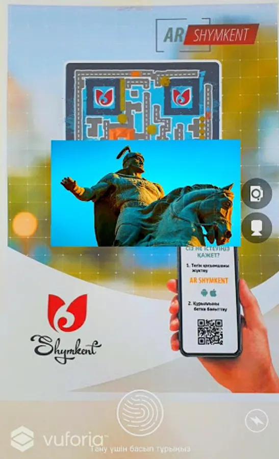 AR Shymkent is a mobile app with AR for tourists. By scanning special markers through your camera device you can see 3D models, AR videos and you can interact with them using your fingers. Move them, increase or decrease their size, rotate them just as you want to see them. Tourists will be able to see and get additional information about touristic places.