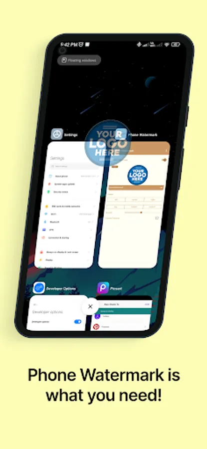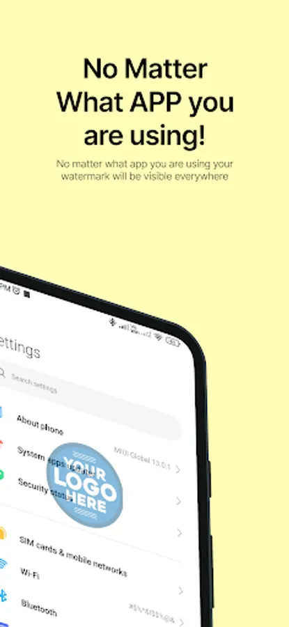 Phone Watermark will let you add your custom watermark to your phone that will be visible across all the phones no matter what application you are using it will always be visible for you unless you stop it.