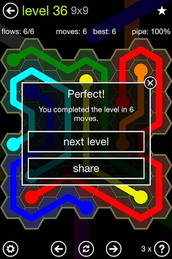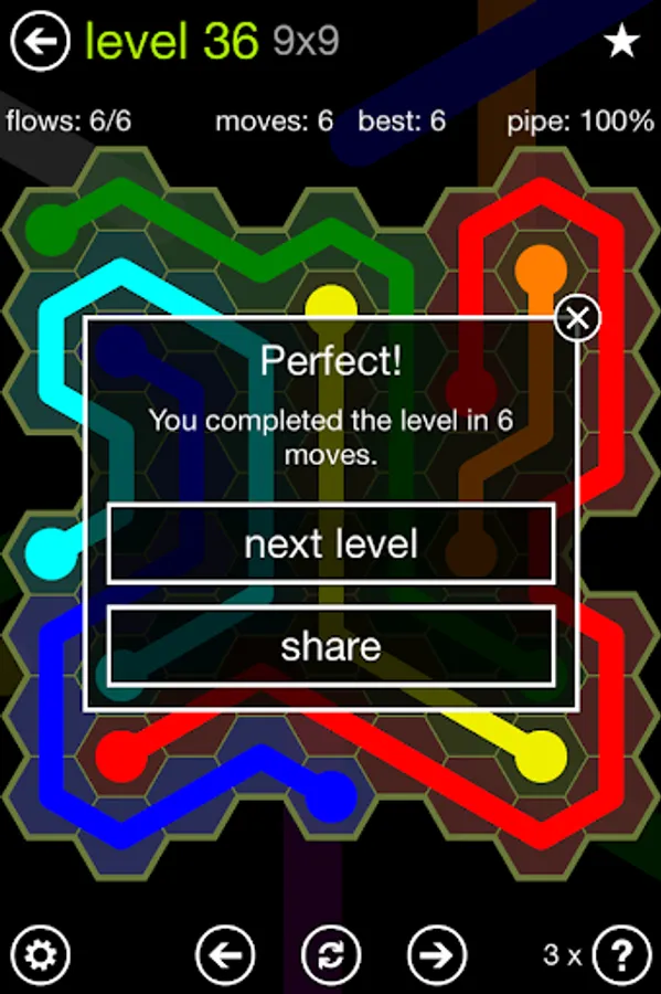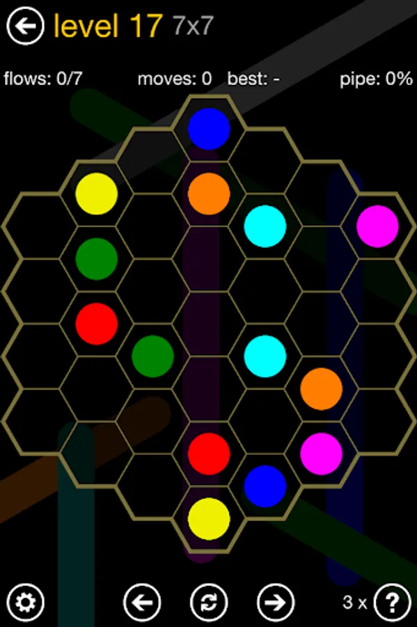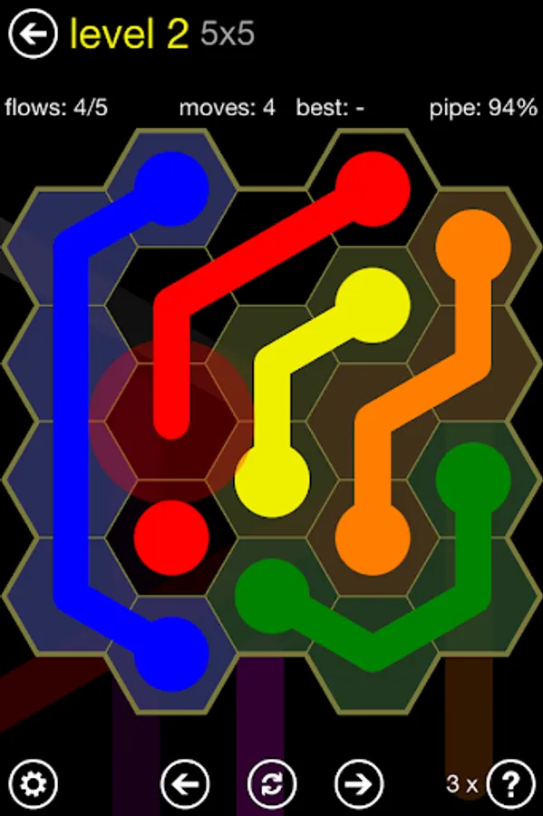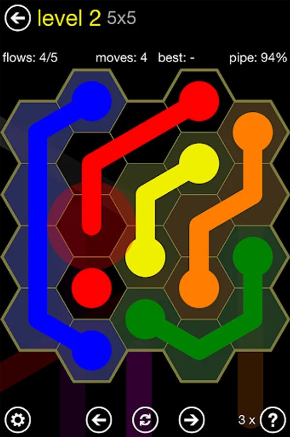 Connect matching colors with pipe to create a Flow®. Pair all colors, and cover the entire board to solve each puzzle in Flow Free: Hexes. But watch out, pipes will break if they cross or overlap!