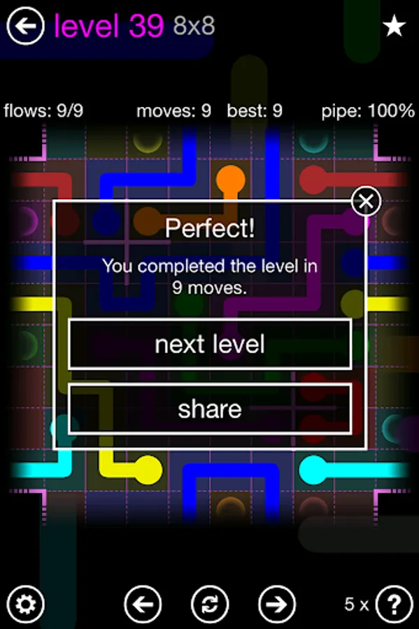 Connect matching colors with pipe to create a Flow®. Pair all colors, and cover the entire board to solve each puzzle in Flow Free: Warps. But watch out, pipes will break if they cross or overlap!