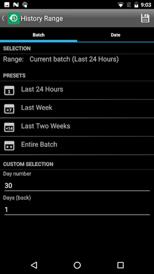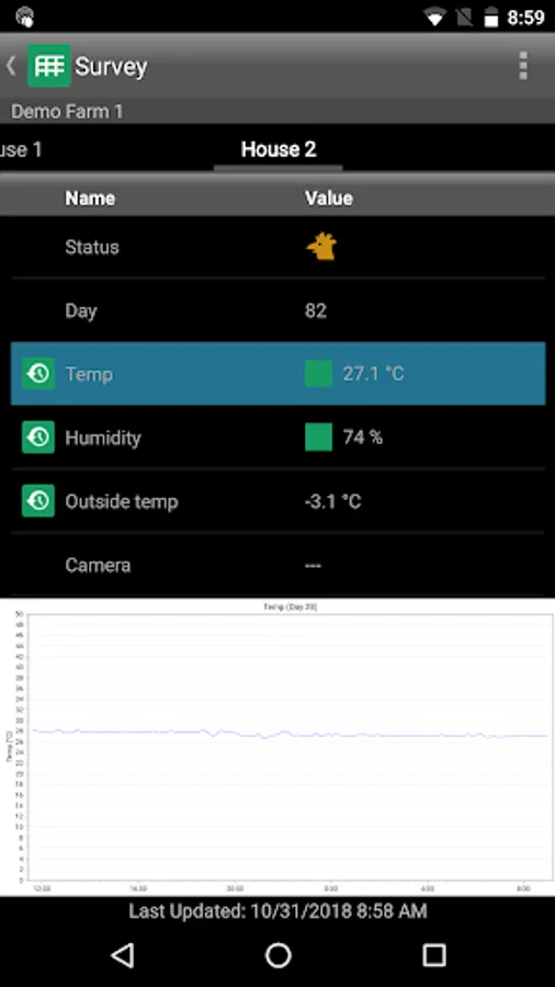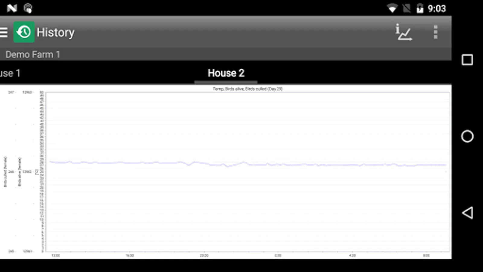 * The app allows for a free selection of the many different available values (e.g. temperature, humidity, set values or layer keyvalues). It is possible to retrieve the developing of several key figures, for an adjustable time period and to compare these as a curve or in a table.