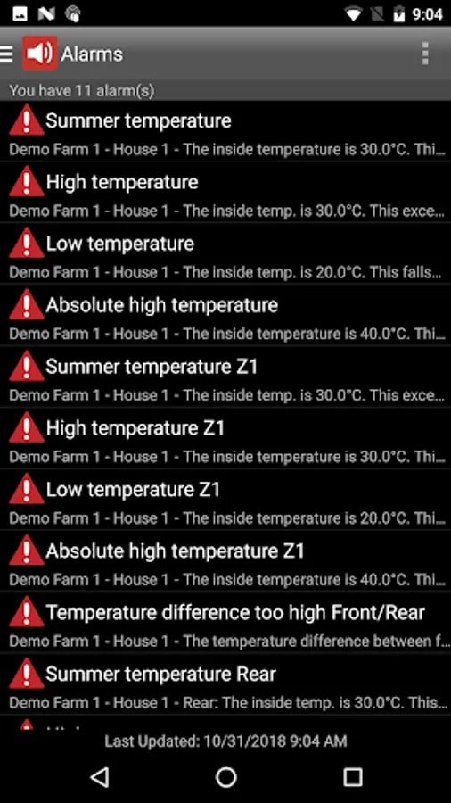 * Alarms are displayed in a comprehensible and concise overview, which includes all important details.