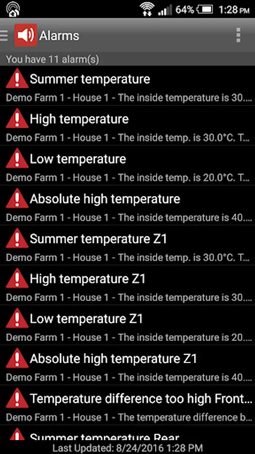 * Alarms are displayed in a comprehensible and concise overview, which includes all important details.