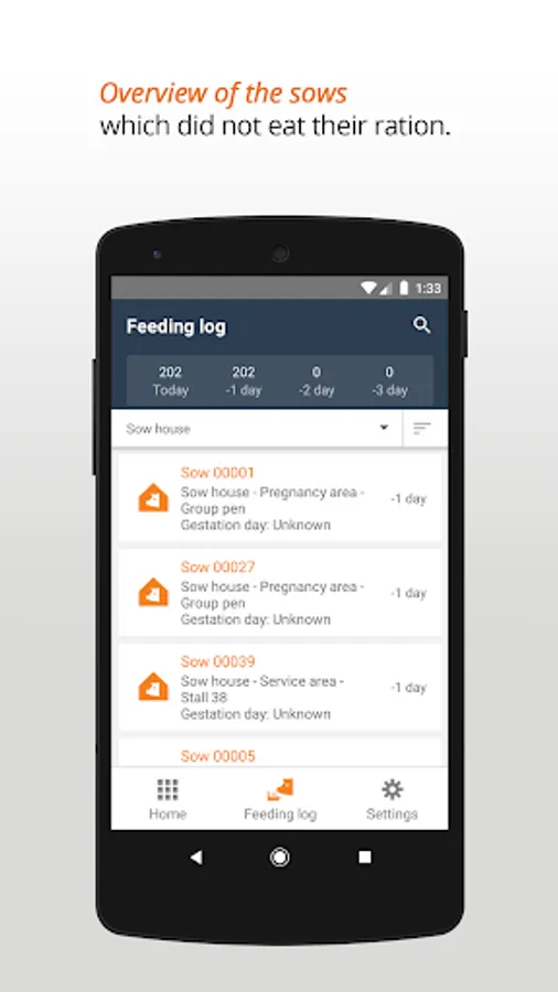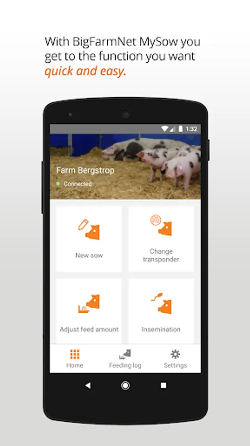 BigFarmNet MySow is the app for every sow farmer using a BigFarmNet system. It simplifies the daily work and helps to enter the data directly at the animal. The entered data is transferred to the system in real time. Activities such as insemination, farrowing and weaning or adjustments to feeding data can be set individually for each animal and implemented quickly and easily with the help of the handheld reader. Animals that have not eaten are visible in a list. Using QuigTag, the Big Dutchman location transponder, these lists can be filtered at pen level. This will only show the animals that are in the pen that the user is standing in front of currently. This makes it easier to find animals in a large group and saves time.