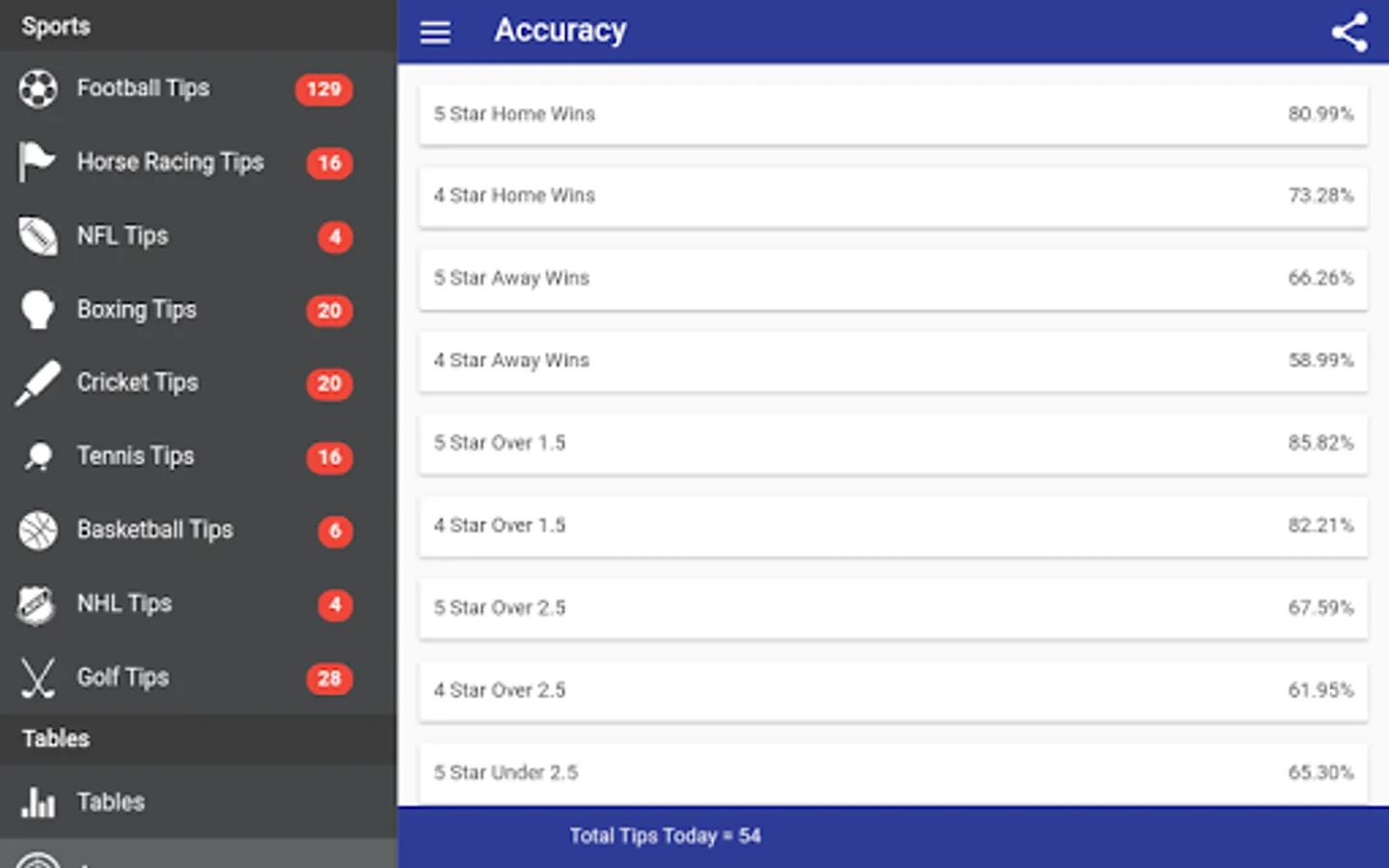 Maximize your sports betting success with Star Sports Tips, your winning companion. Our app is your ticket to unbeatable sports predictions with an astounding 86% accuracy rate in soccer and more. Elevate your betting game with our free app that provides live scores and comprehensive soccer statistics for smarter wagers.
