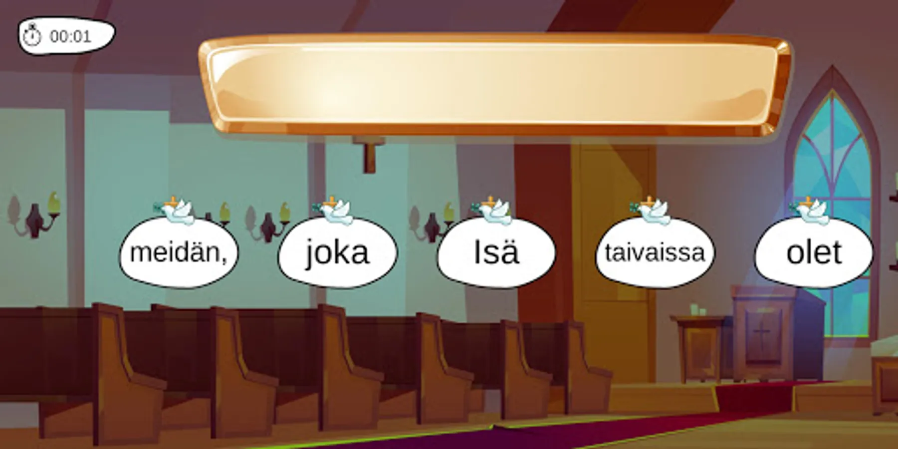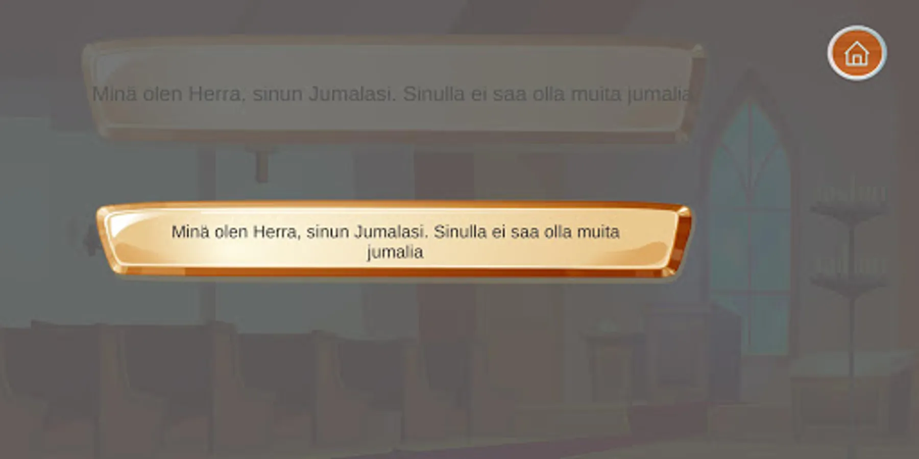 The game includes the most popular outdoor lessons: Our Father Prayer, Confession of Faith, Lord's Blessing, Baptism and Mission Commandment, and Ten Commandments.