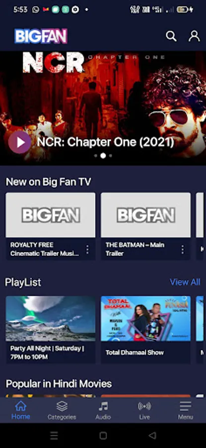 BIG FAN TV app is the one-stop destination for your entertainment. Wherein you get everything, from movies and songs to podcast, in just one click. With the BIG FAN TV app, you don’t have to install and manage different apps. All you need is to install BIG FAN app and stream anything you want for your entertainment.