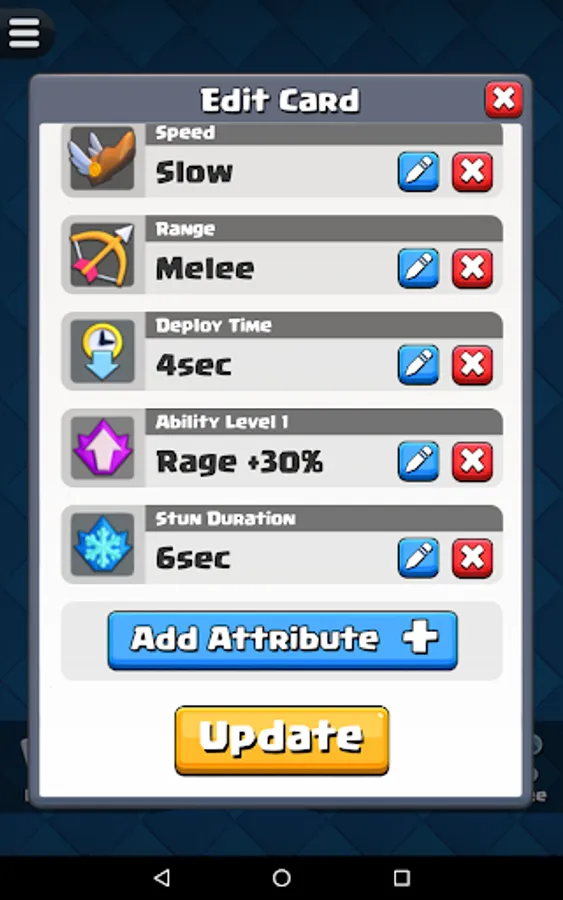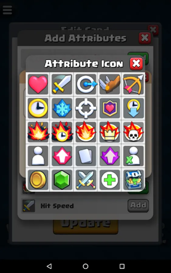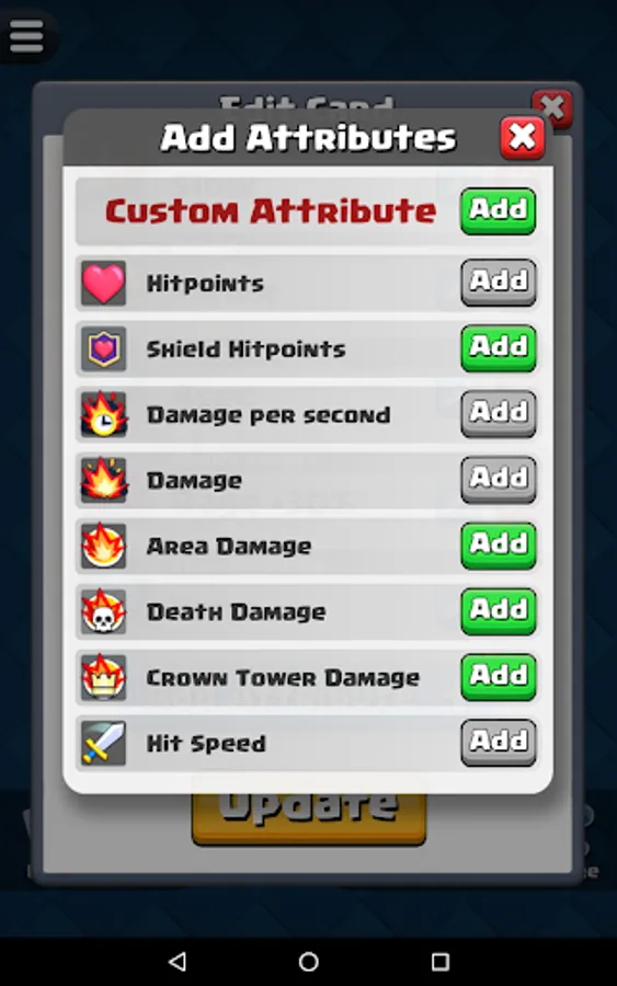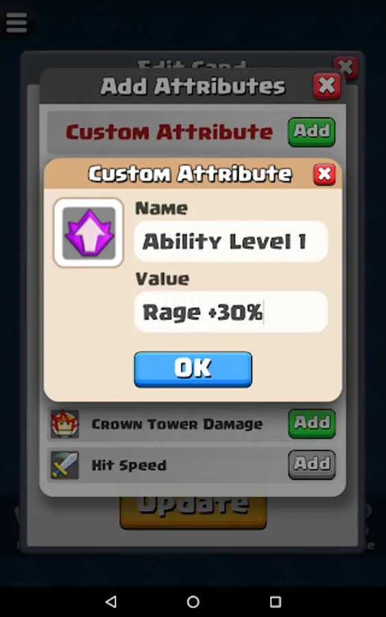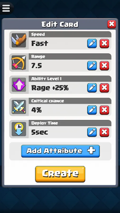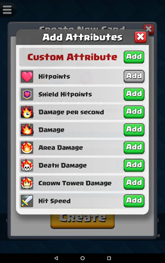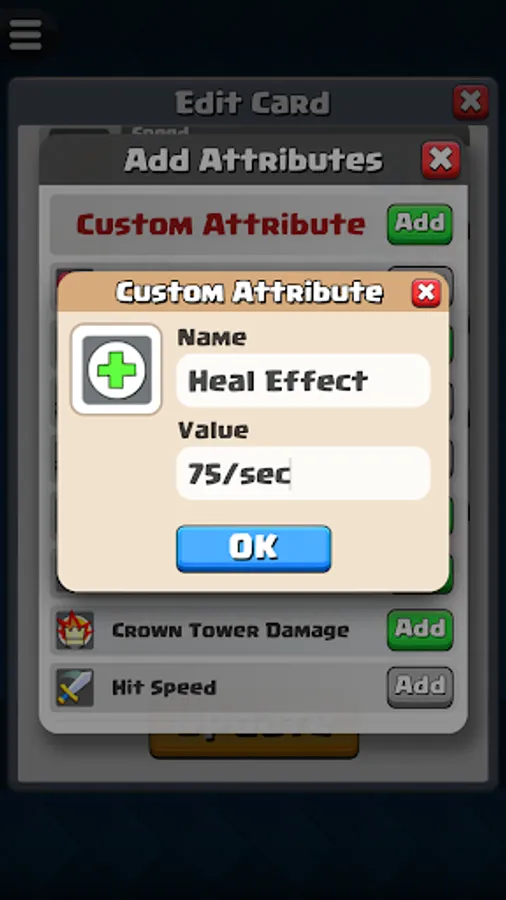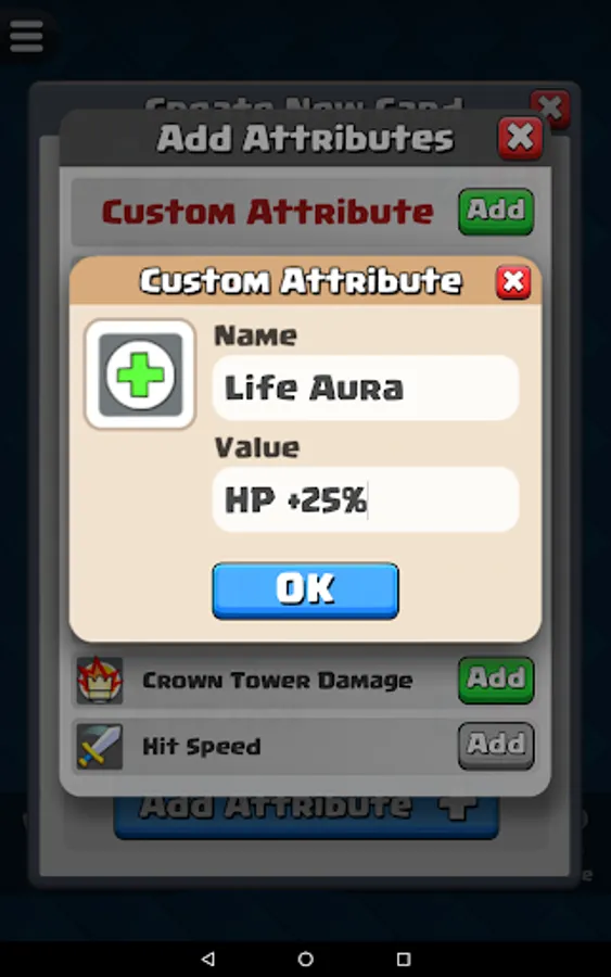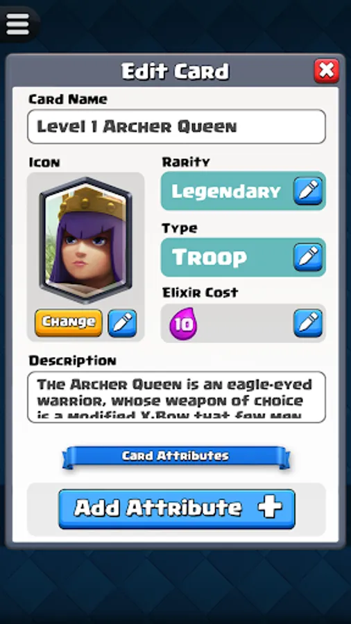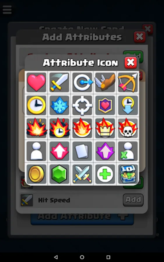- Predefined card attributes (quick add for the card attributes appeared in Clash Royale)