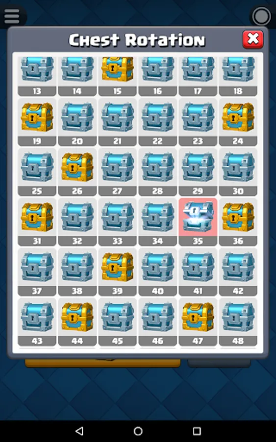 This app acted as a guidance app for the game Clash Royale by Supercell. This is unofficial and not associated by Supercell. All Chests images, background, popup are belong to Supercell. For more information, see Supercell's Fan Content Policy http://supercell.com/en/fan-content-policy/