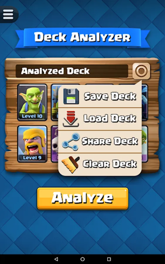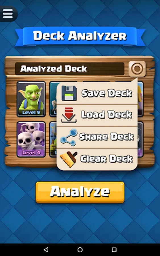 Deck Analyzer can also be considered as a Deck Builder for Clash Royale. Deck Analyzer has all the characteristics of a Deck Builder and it is even better than a regular Deck Builder for Clash Royale.