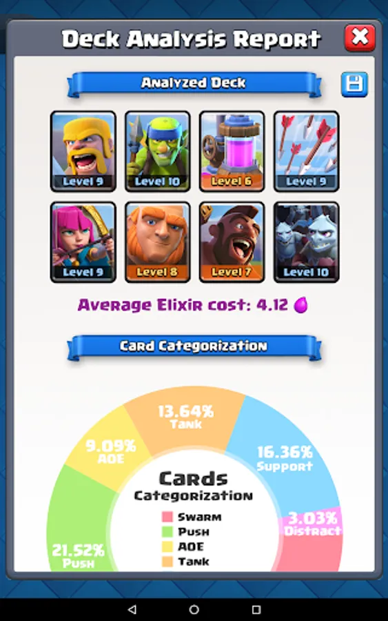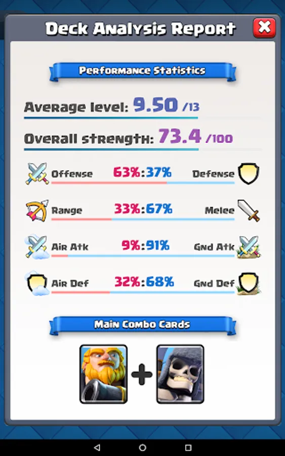 Deck Analyzer (helper tool for Clash Royale) is an advanced analytical tool / deck builder for Clash Royale battle decks.