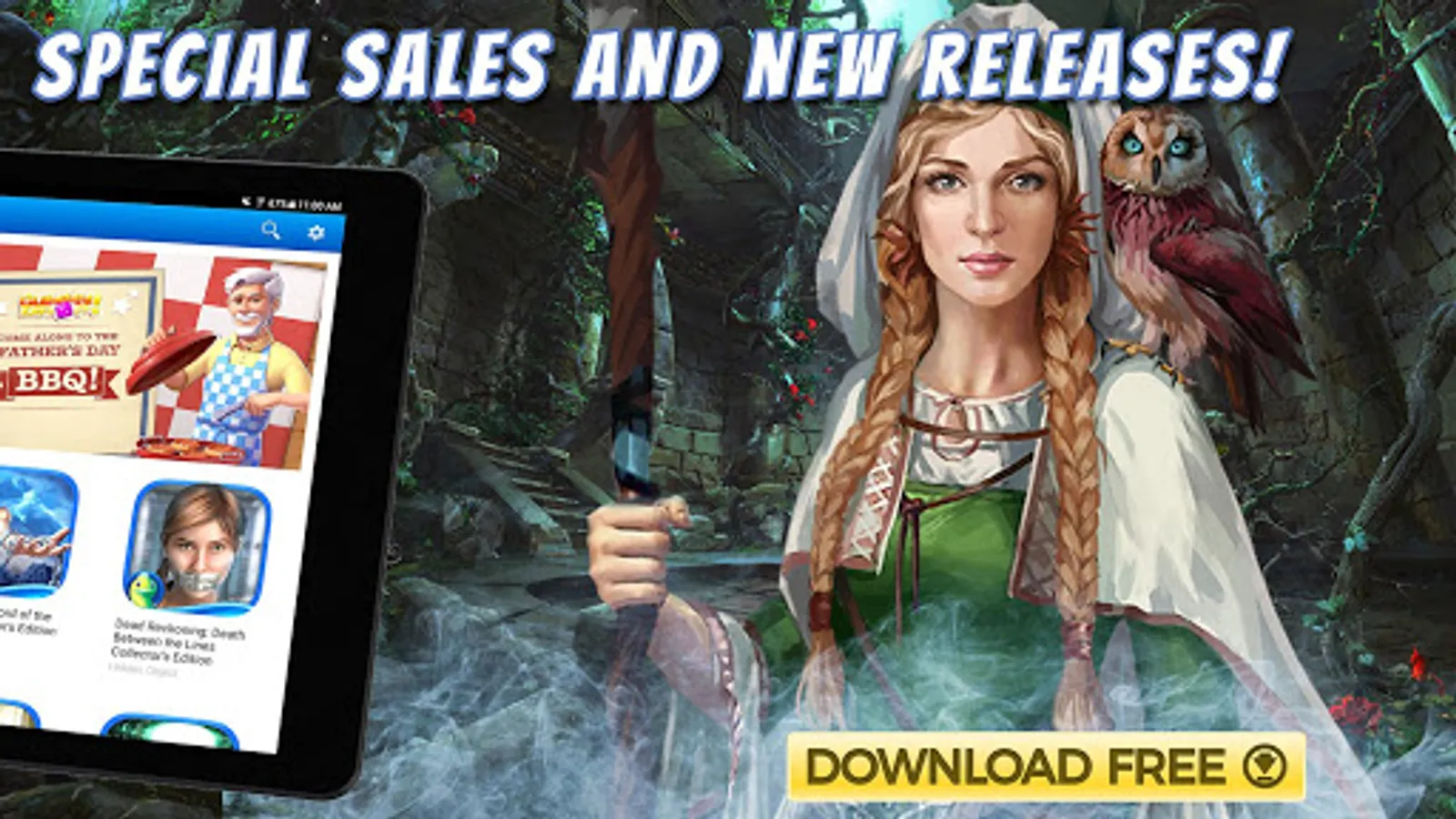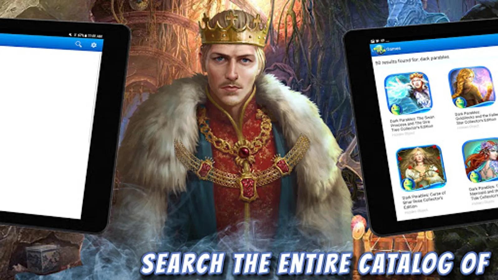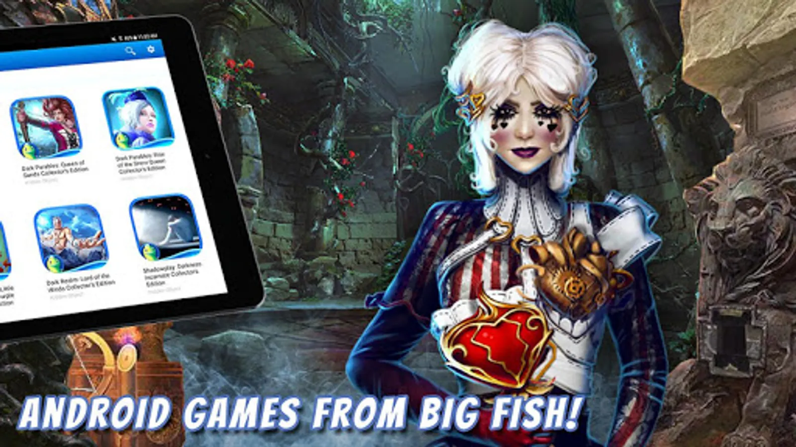 Looking for new Android games? Find new favorites or rediscover classic series with the Big Fish Games App. Search through a catalog of games and be the first to know about new releases and sales on hidden object and puzzle games including the popular Dark Parables, Mystery Case Files, and Christmas Stories series. With the Big Fish Games App, you are instantly connected to hundreds of the games in the Big Fish catalog for your Android devices!