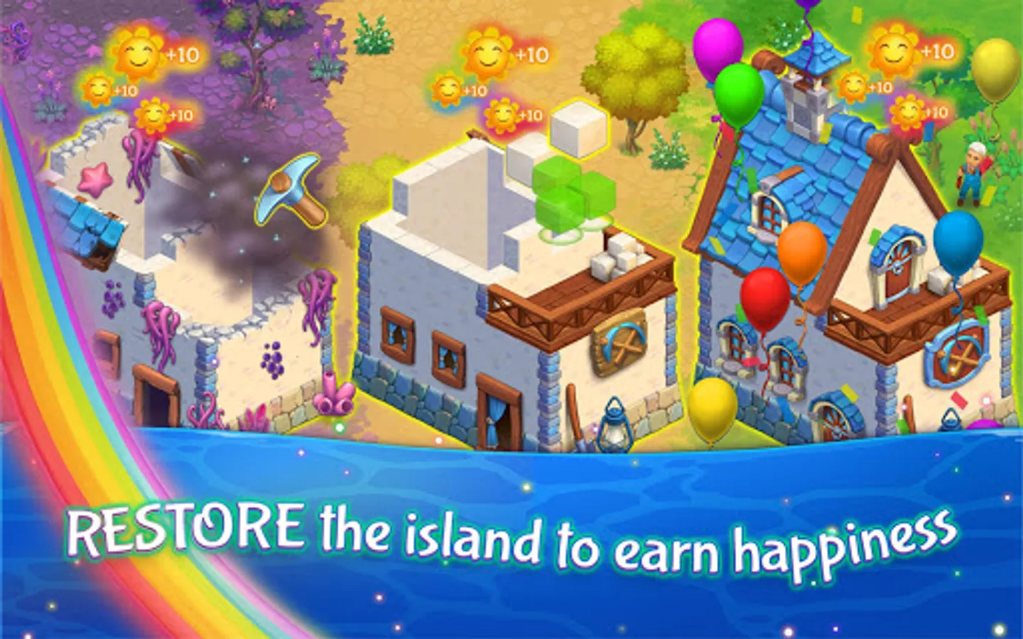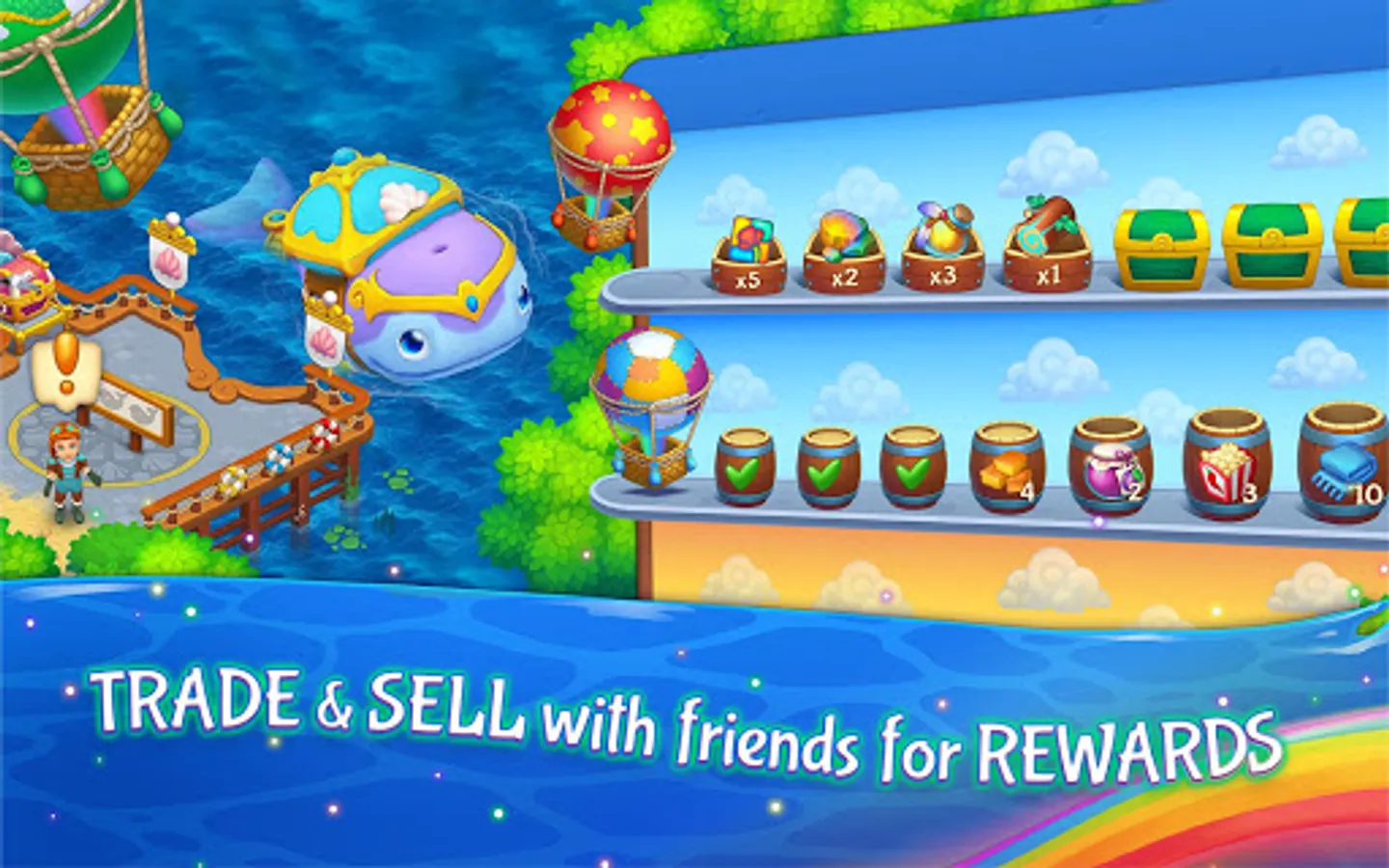 • Collect balloons 🎈and earn daily rewards fulfilling orders for the villagers