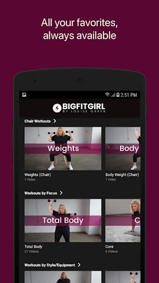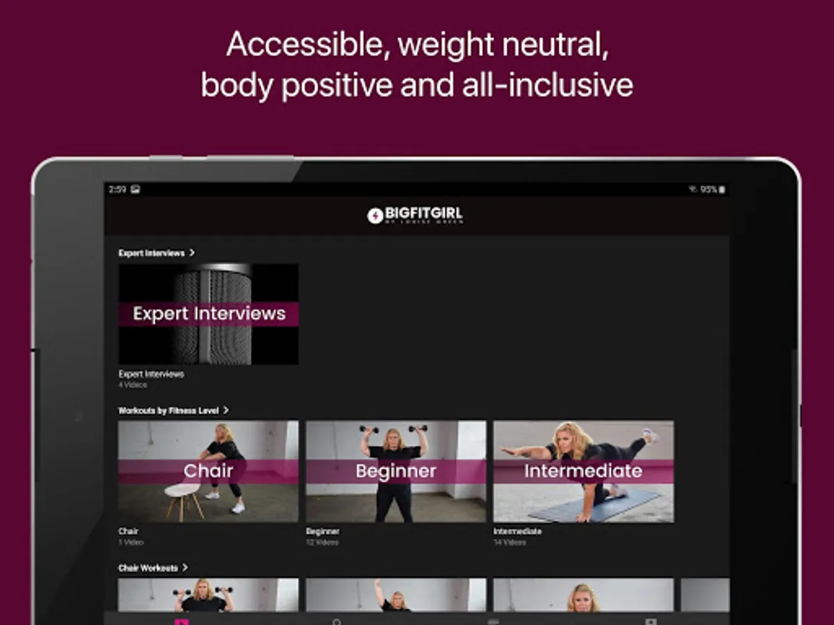 Fitness for all shapes and sizes, BIG FIT GIRL by Louise Green is accessible, weight neutral, body positive and all-inclusive, specifically designed for people who may be intimidated by mainstream fitness. A progressive app where you can take your workouts from chair fitness, all the way up to high intensity workouts, with all the latest cutting-edge equipment. The Big Fit Girl fitness app will change your fitness perspective and your life.