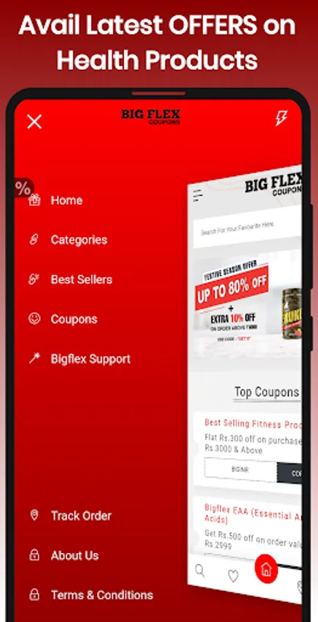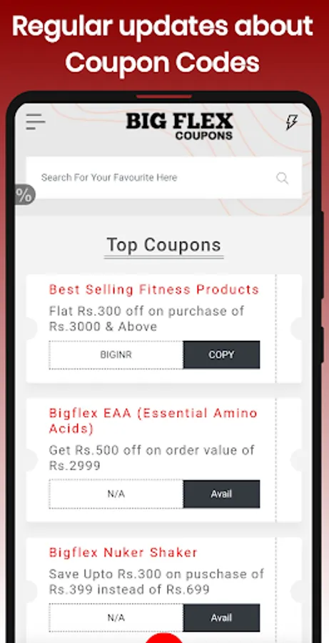 Are you looking for the best offers on bigflex body supplements? Then your wait is over! Big Flex Coupons app provides all the updates & discount coupons active on whey protein, muscle mass gainer, BCAA, creatine including other pre workout products of BigFlex.