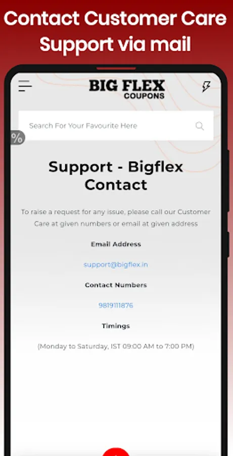 ⭐ Contact Store - Contact customer support for any query or service issue via phone or email at - support@bigflex.in | admin@bigflex.in | Call on : 9819111876