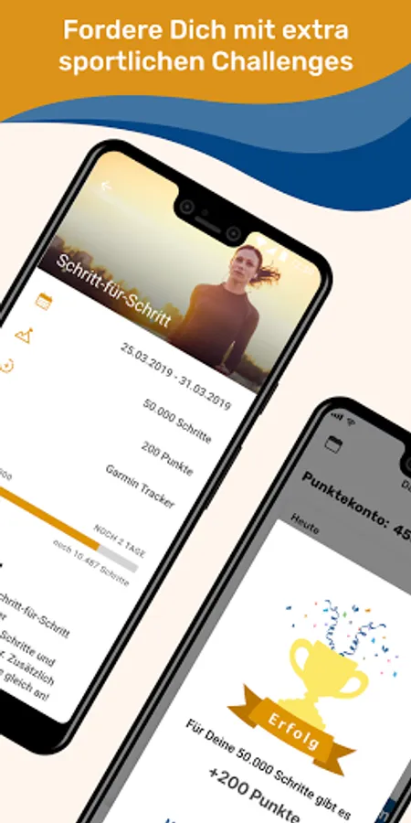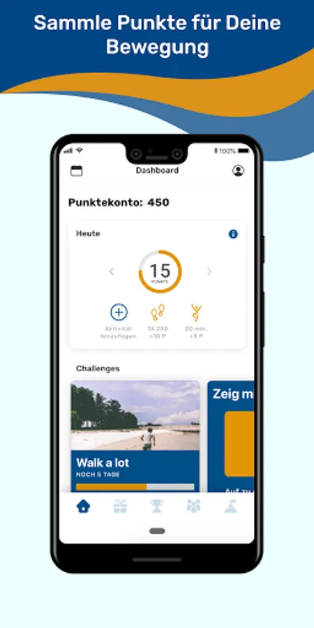 Motivating challenges: We challenge you to achieve a specific goal within a period of time that you can determine yourself. If you master the challenges, extra points are always waiting for you as a bonus. In addition, there are always sporting prizes waiting to be redeemed!